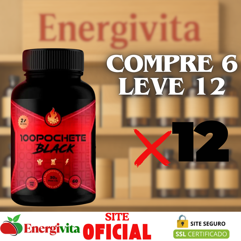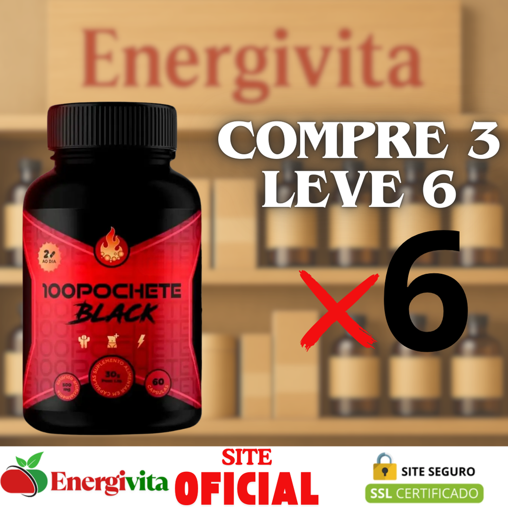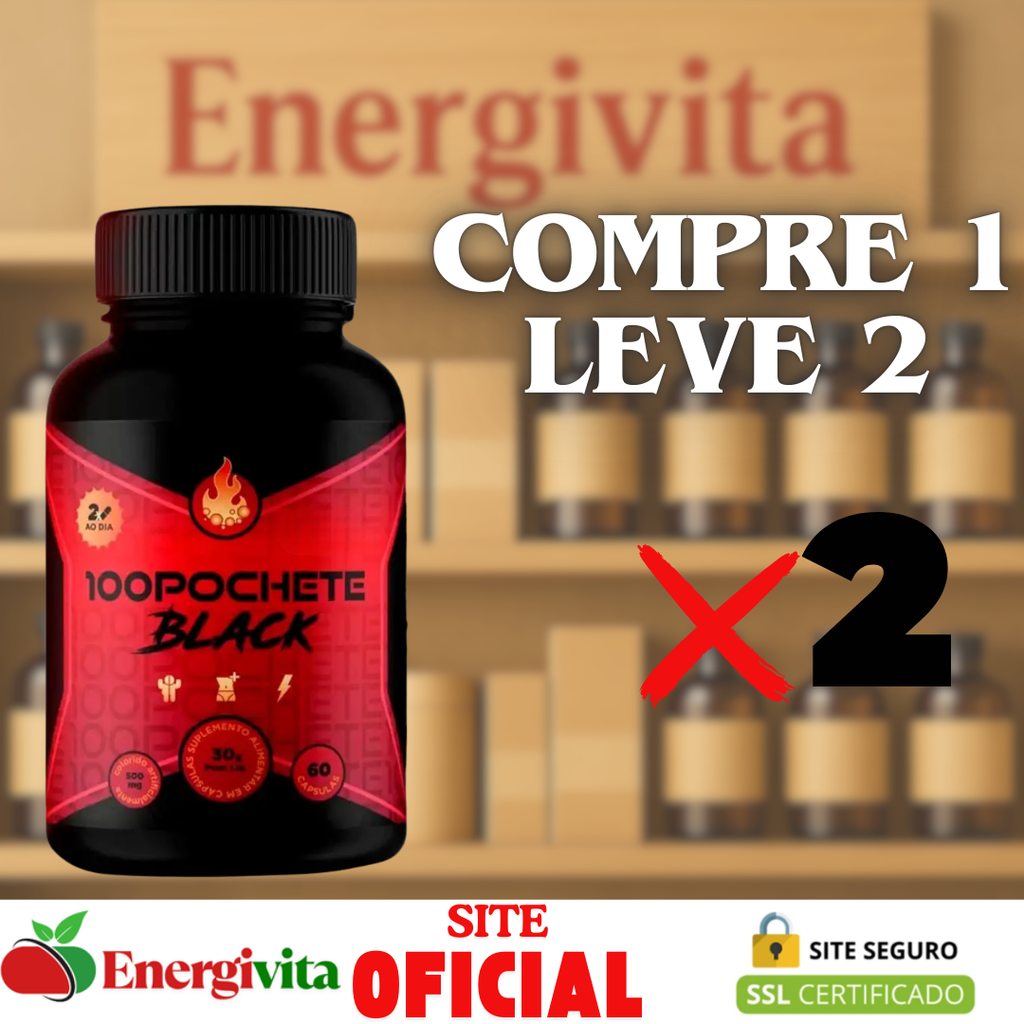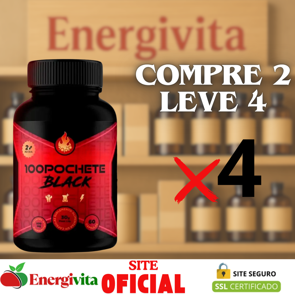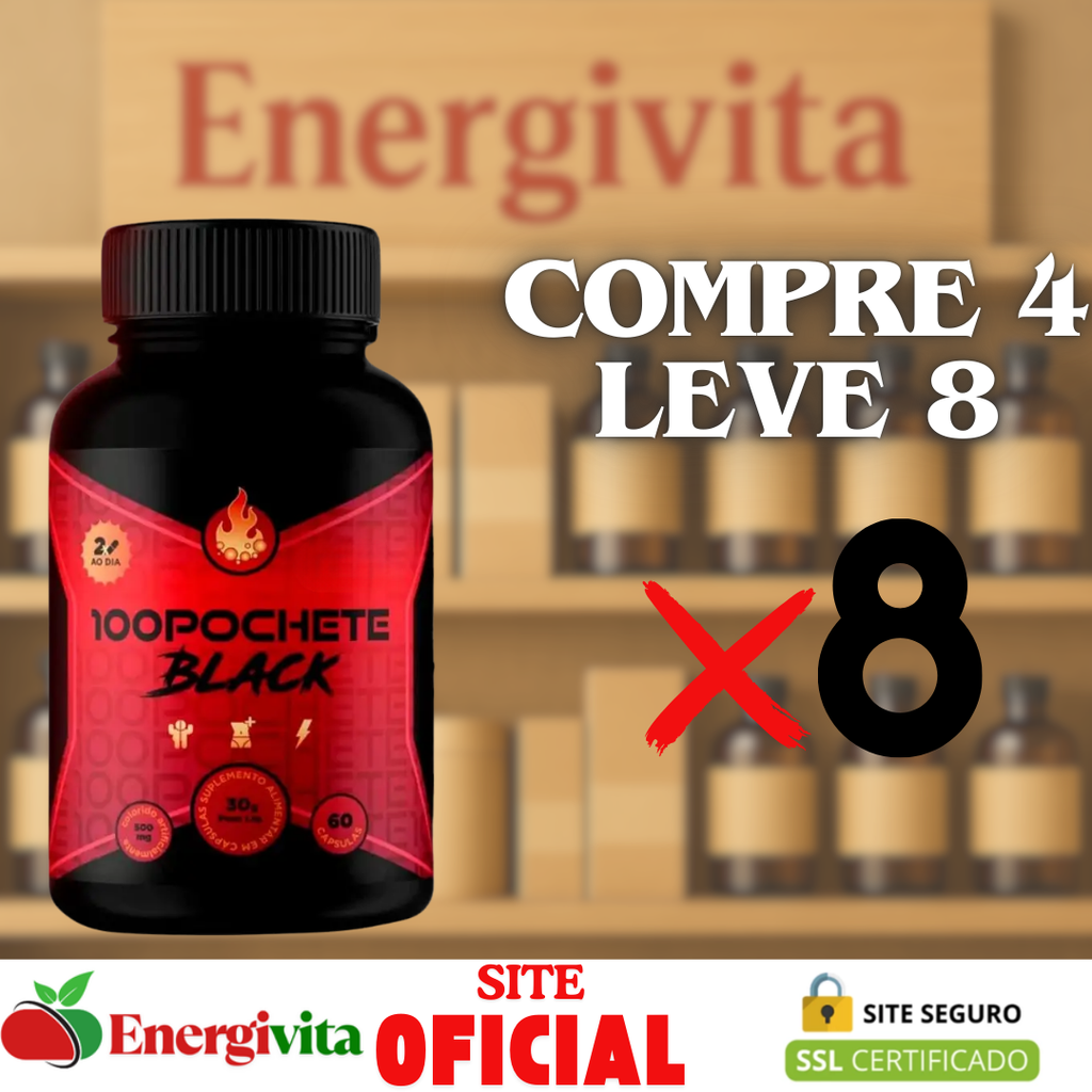 100 Pochete Black é um suplemento desenvolvido para quem busca mais equilíbrio, leveza e movimento no dia a dia. Sua combinação exclusiva de ativos naturais auxilia no estímulo ao metabolismo, promovendo mais energia e ajudando a manter uma rotina mais dinâmica e saudável.